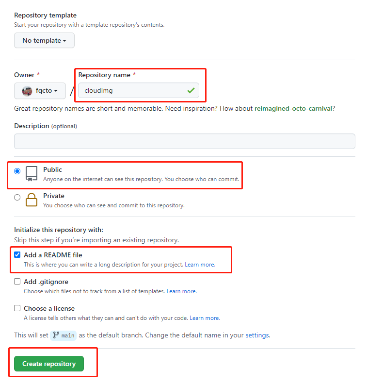 设置仓库名————设置为公开————创建初始化文件————下一步