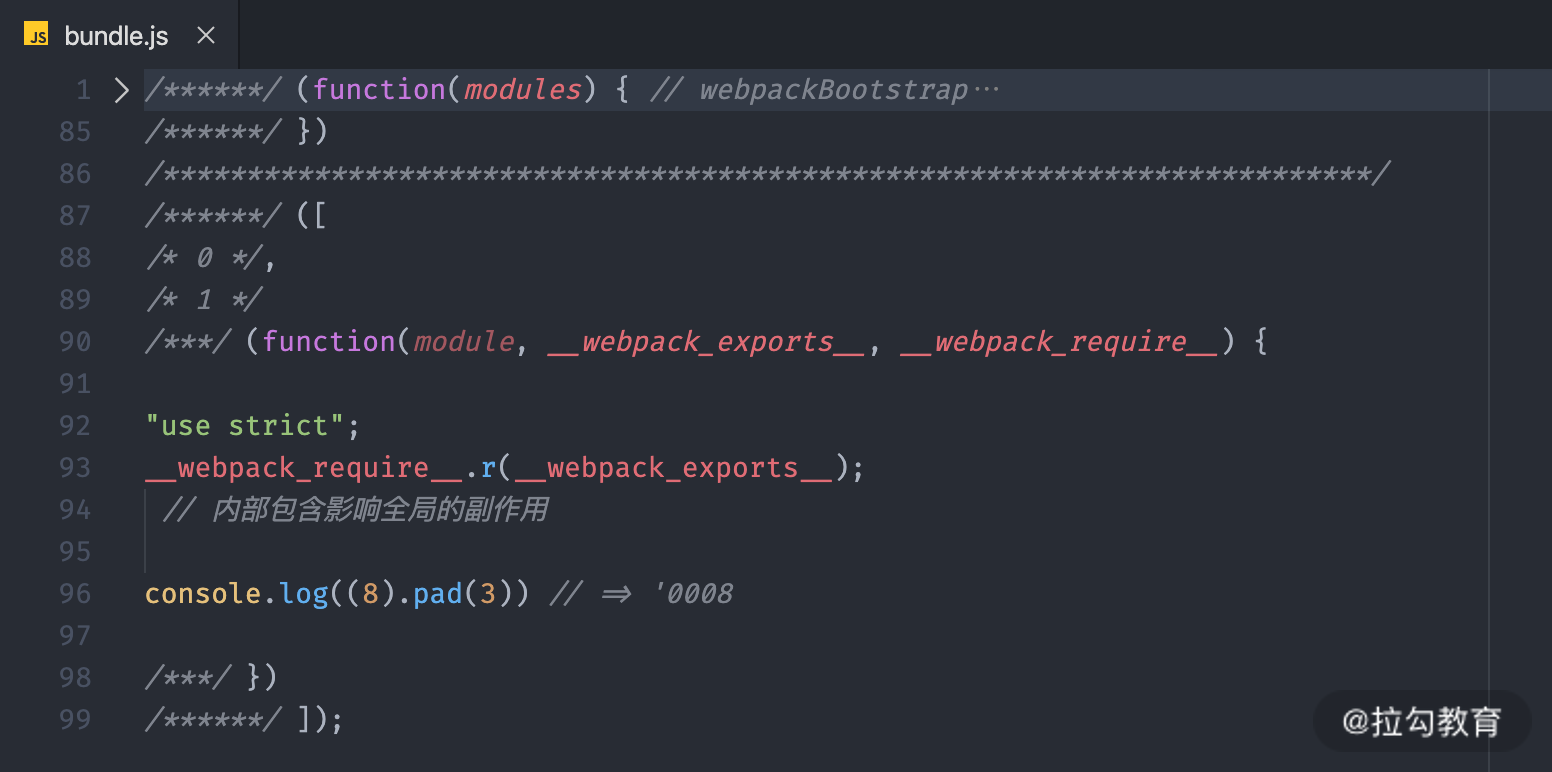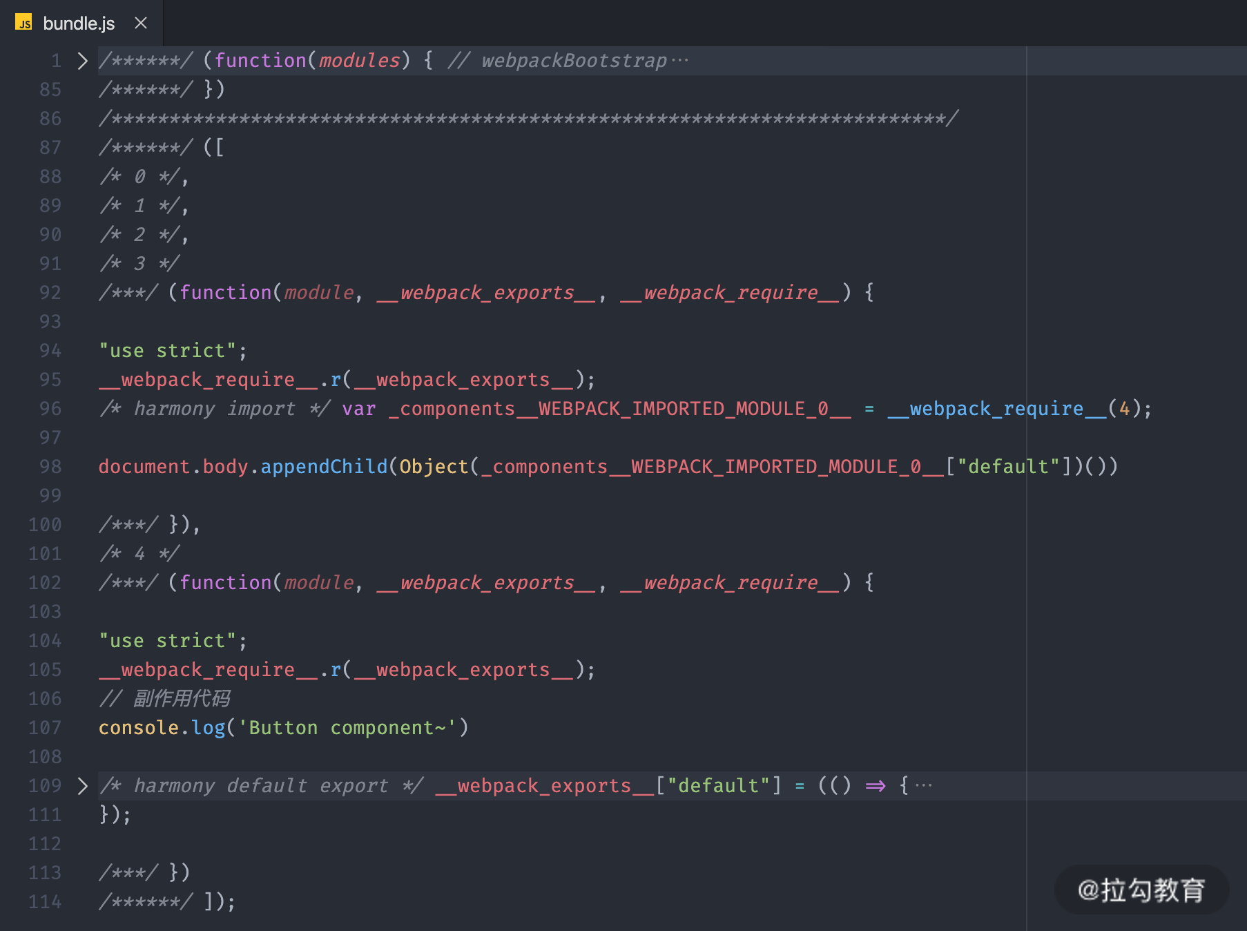 - 第二,能够将散落的模块再打包到一起,这样就解决了浏览器频繁请求模块文件的问题。这里需要注意,只是在开发阶段才需要模块化的文件划分,因为它能够帮我们更好地组织代码,到了实际运行阶段,这种划分就没有必要了。