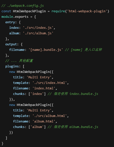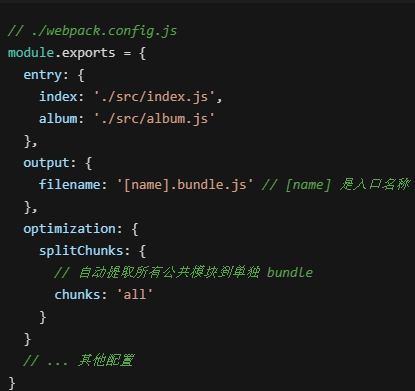 同理,如果我们的代码中引用了 jquery lodash 等,也希望将第三方模块单独打包,和开发的业务代码分开。这样每次重新上线,第三方模块的代码就可以借助浏览器缓存,提高用户访问网页的效率。修改配置文件,增加下面的 vendor: {...}