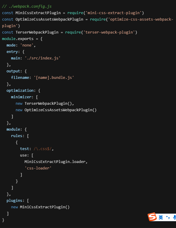 需要注意的是:我们添加的 import 语句只是为了导入 Webpack 配置对象的类型,这样做的目的是为了标注 config 对象的类型,从而实现智能提示。在配置完成后一定要记得注释掉这段辅助代码,因为在 Node.js 环境中默认还不支持 import 语句,如果执行这段代码会出现错误